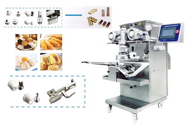 구성: 참깨 살포 장치, 긴막대 자르기 장치, 곰돌이 비스킷 및 실 절단장치, 충전 장치, 투톤 볼 몰드, 나선형 과일 몰드